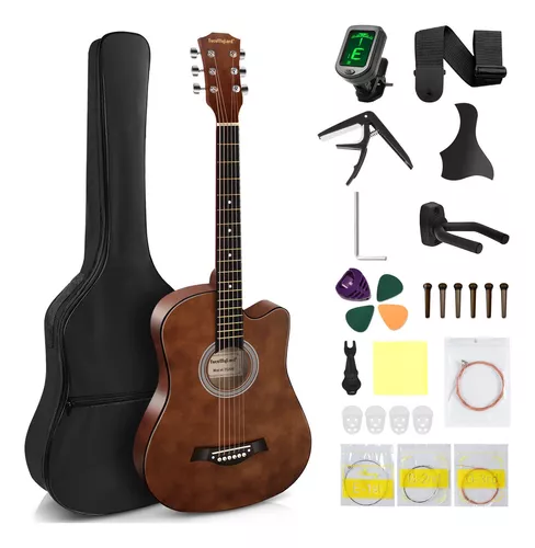 Guitarra Acústica Clasica 38 Inch Con Funda Y Accesorios,FocoMyLord FG820 Paquete para Principiantes Guitarra Diestros Con Bolsa,Cuerdas extra,Capo,Afinador Digital,Alma,Café Matte