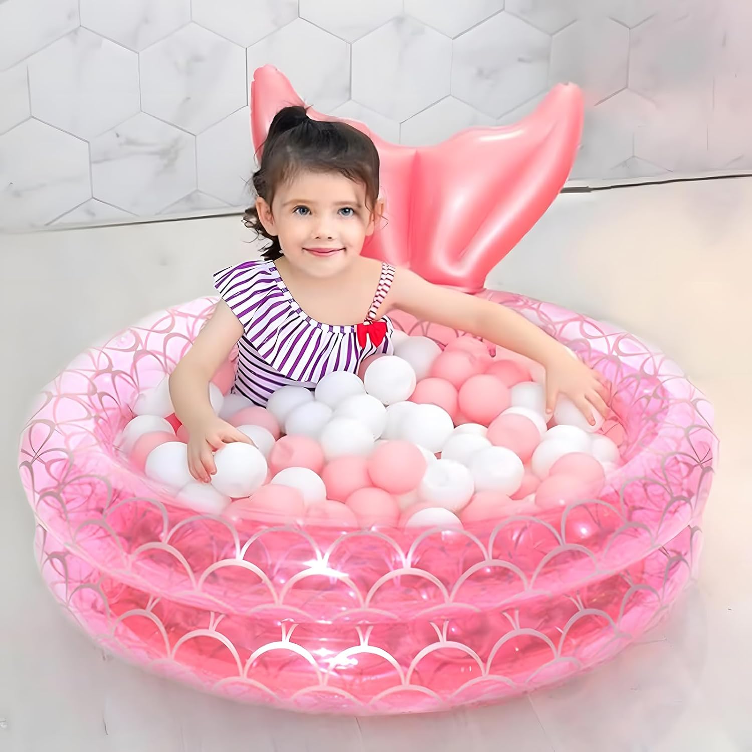 - Hermosa Piscina de Sirena: diseño de estilo sirena, material translúcido, color rojo rosa, lo hizo hermoso. El regalo de verano favorito de las niñas. Es como jugar en un mundo de cuento de hadas.