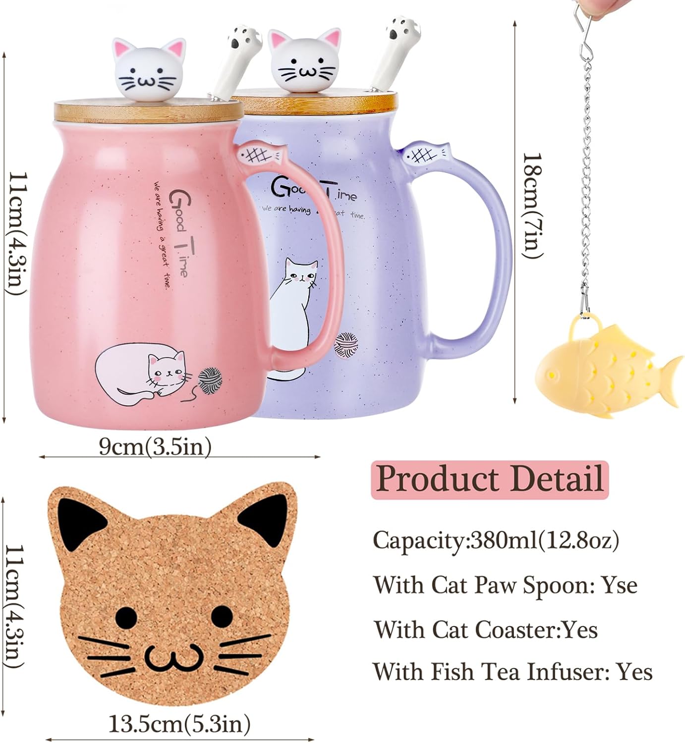 - Decoración para gatos y cosas lindas para gatos: esta taza de té con un diseño exquisito, viene con una cuchara de pata de gato, un bonito posavasos de anime Kitty e infusor de té de pescado. Las tazas de café kawaii para gatos son muy lindas. Esta taza japonesa es una decoración para gatos en el computadora o habitación. Las bonitas tazas de café también son adecuadas para calentar tazas, puedes poner la taza para gatos en el calentador de tazas para mantenerte caliente o calentando. La taza para gatos es un gran regalo para gatos para mujeres.