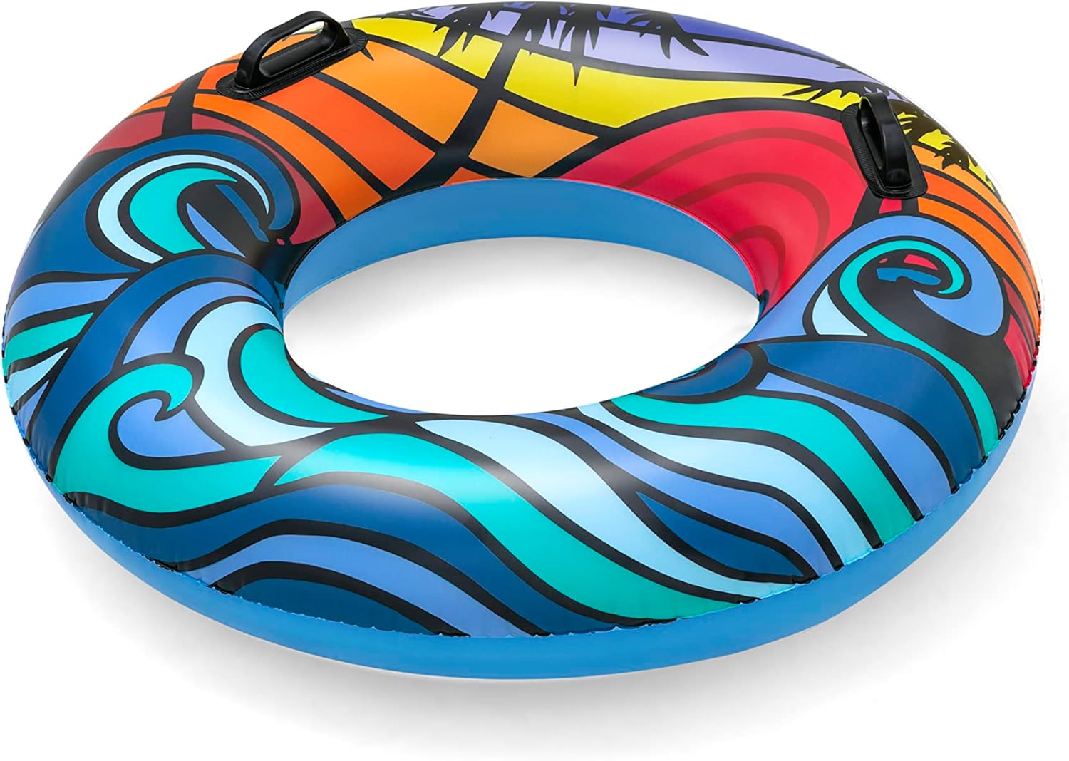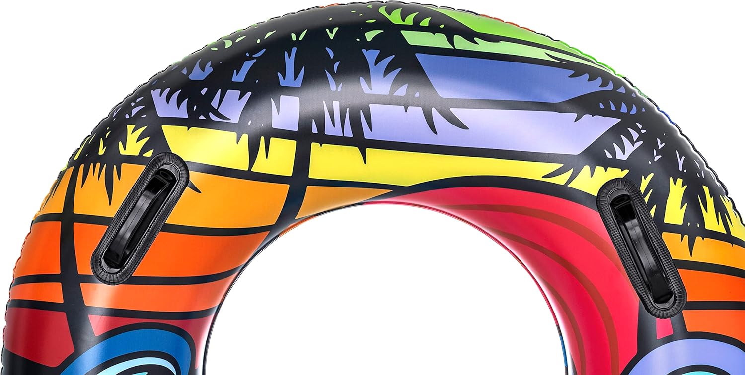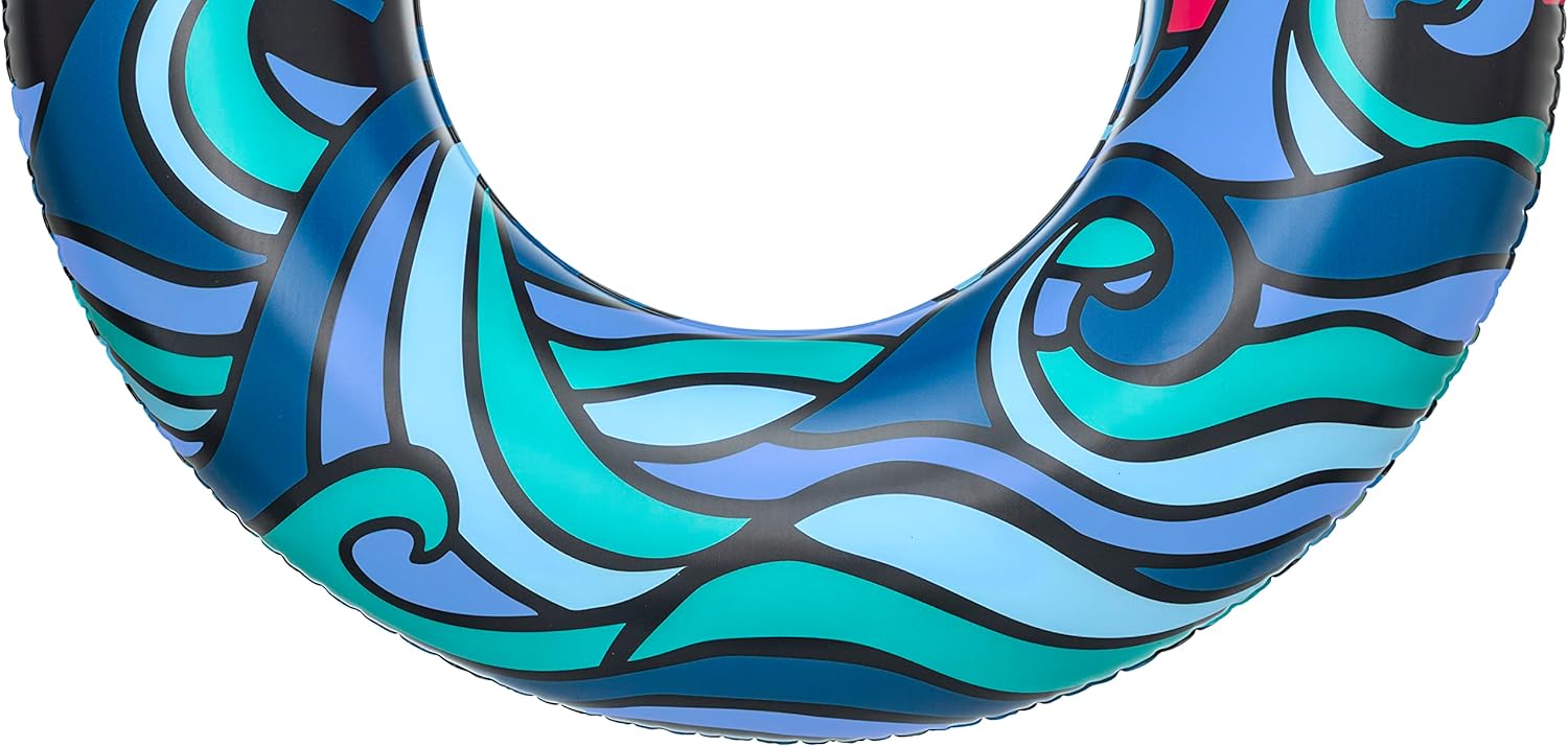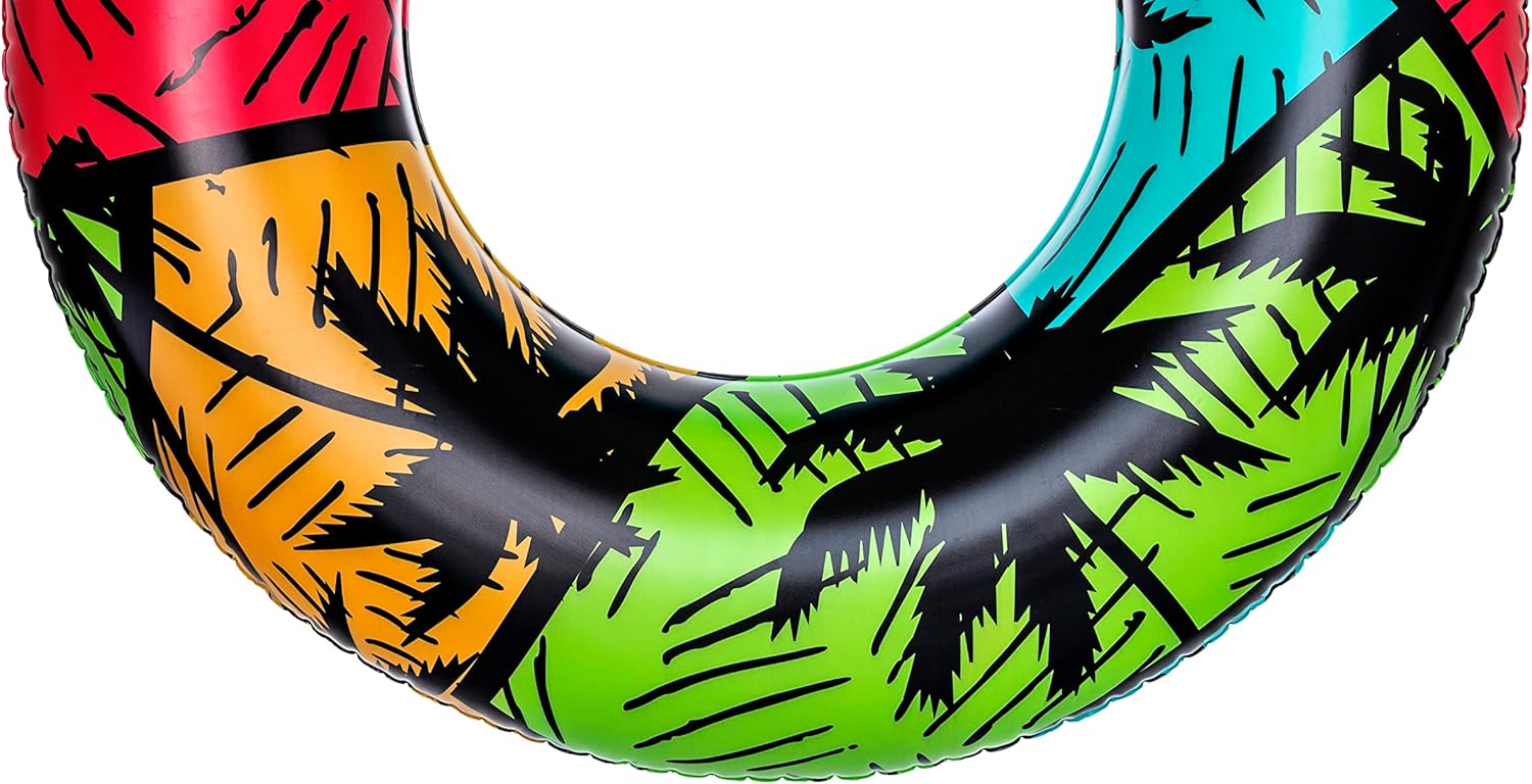 - Anillo de natación inflable: es el juguete de piscina perfecto para relajarse en un día caluroso. El diseño tropical único es ideal para días de playa o piscina. El anillo de natación más llamativo es un accesorio esencial para llevar de día festivo contigo