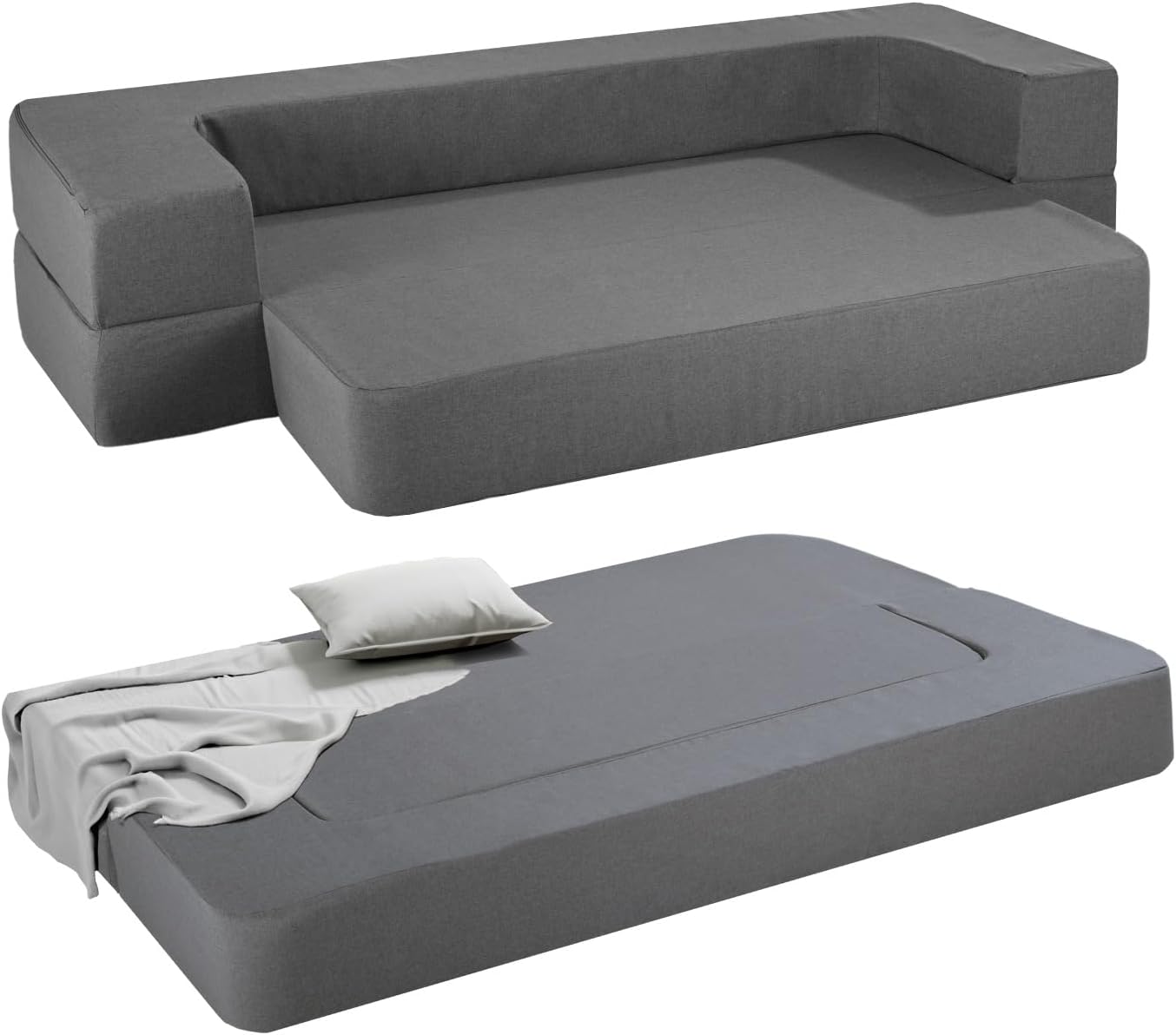- SOFÁ 3 EN 1: Disfruta de la versatilidad de este sofá cama 3 en 1. Transforma de sofá con respaldo a sillón sencillo, y descansa usando como colchón.