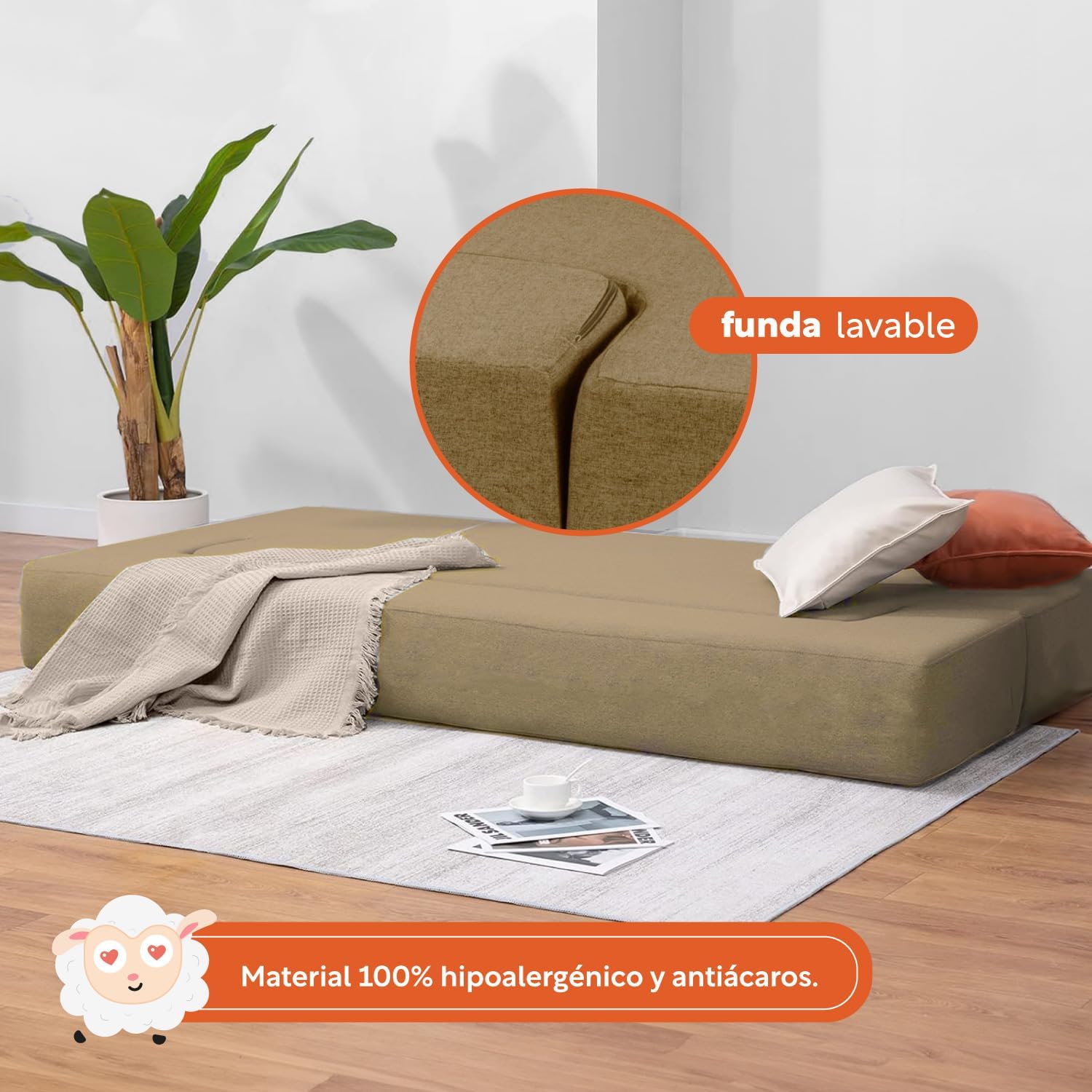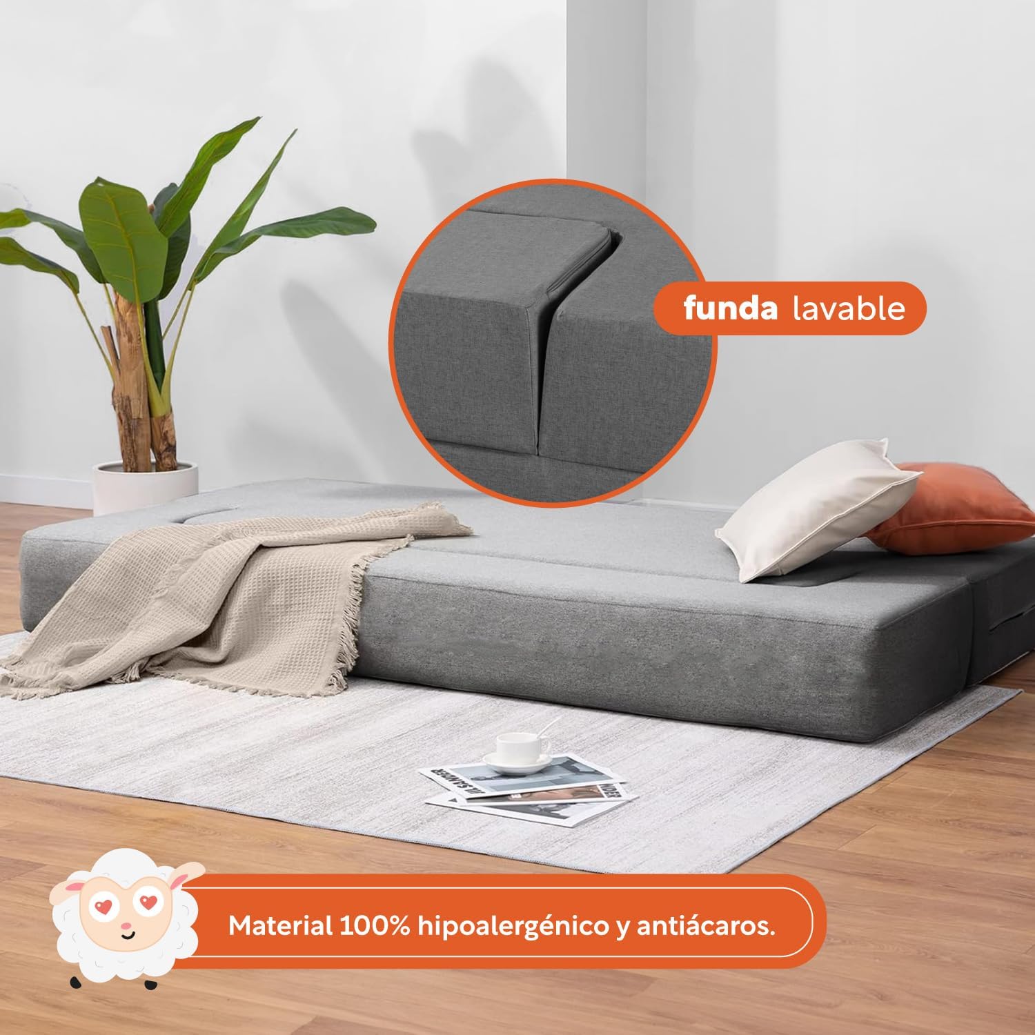 FÁCIL LIMPIEZA: Mantén siempre limpio tu sofá cama gracias a la funda de tela oxford lavable y removible.