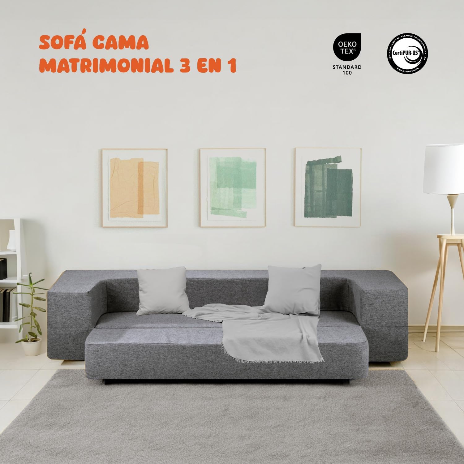 AVALADO POR EXPERTOS: Nuestro sofá cama está fabricado con materiales hipoalergénicos y antiácaros, con certificación CertiPUR-Us. Seguro para toda la familia.