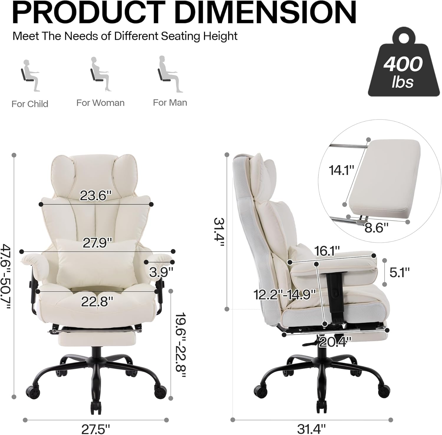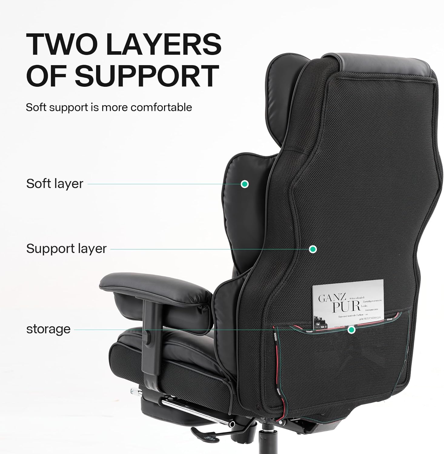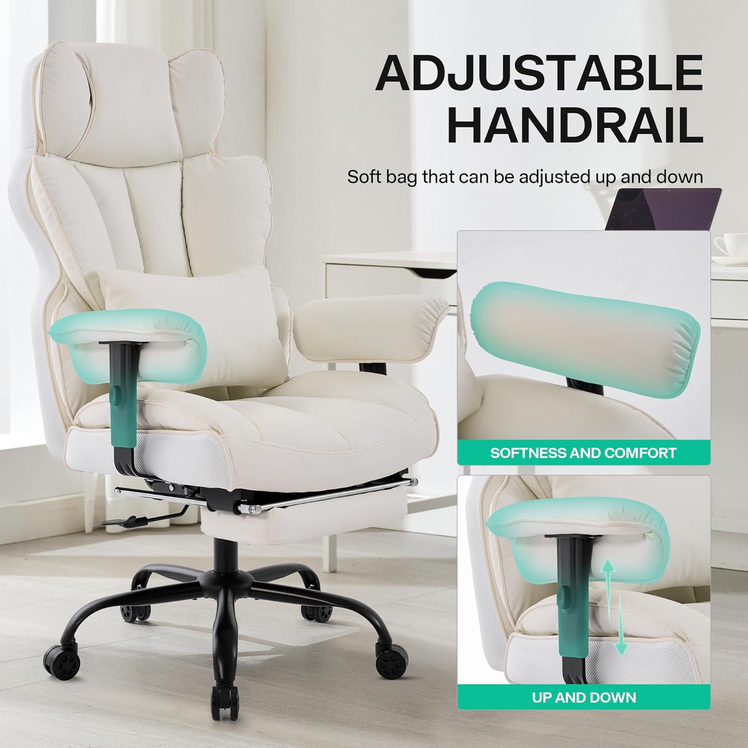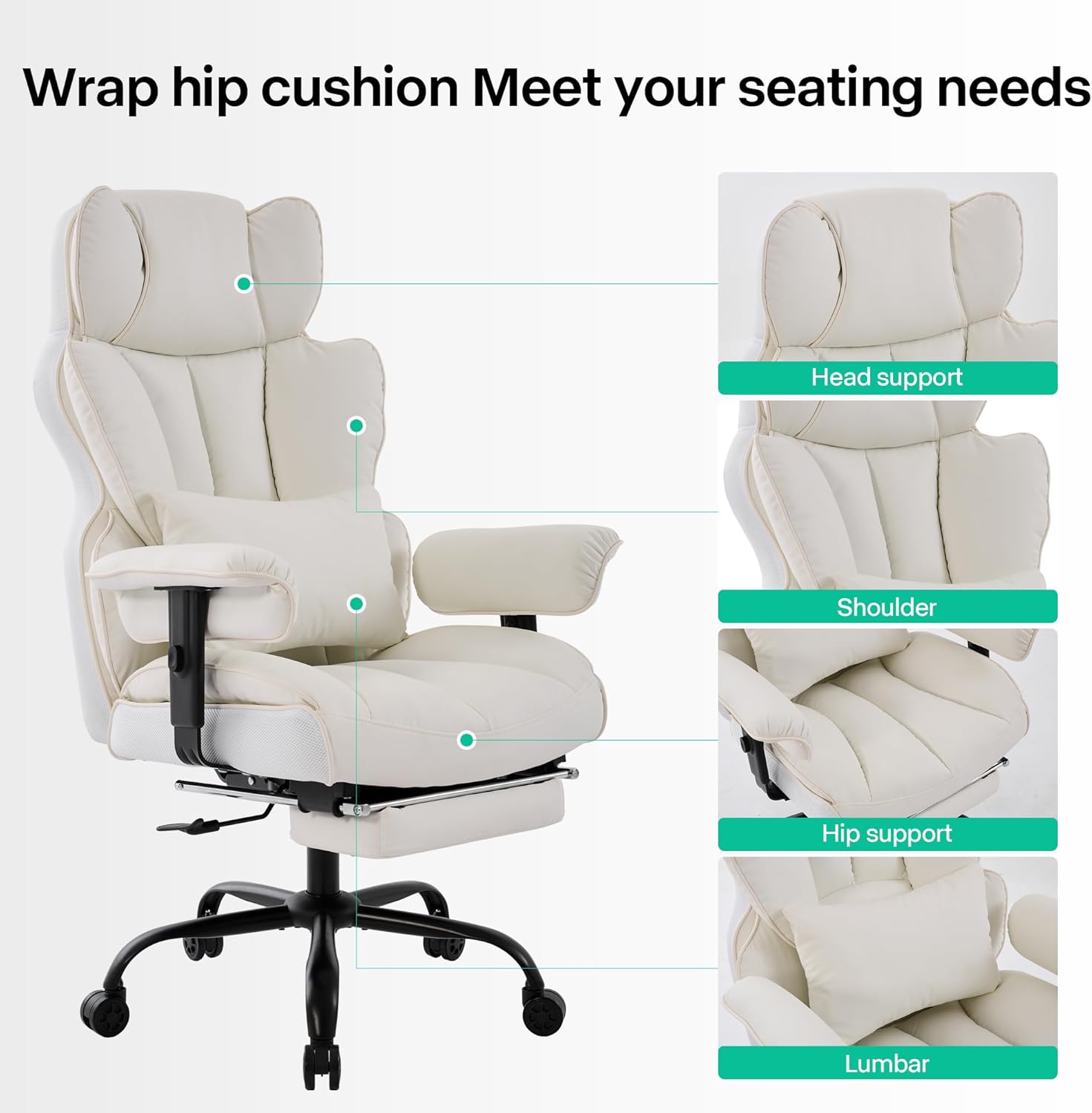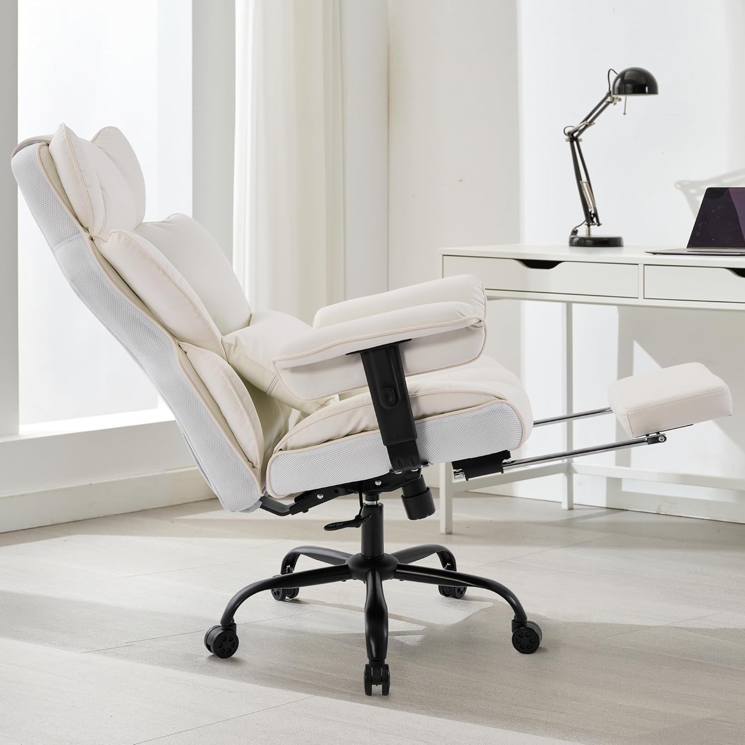 - 1. Diseño cómodo: la amplia silla de oficina cuenta con una esponja gruesa, suave y elástica tanto en el respaldo como en el cojín del asiento. El exclusivo asiento ergonómico en forma de silla de computadora y el diseño de respaldo más amplio garantizan una comodidad duradera para sesiones de trabajo o estudio prolongadas