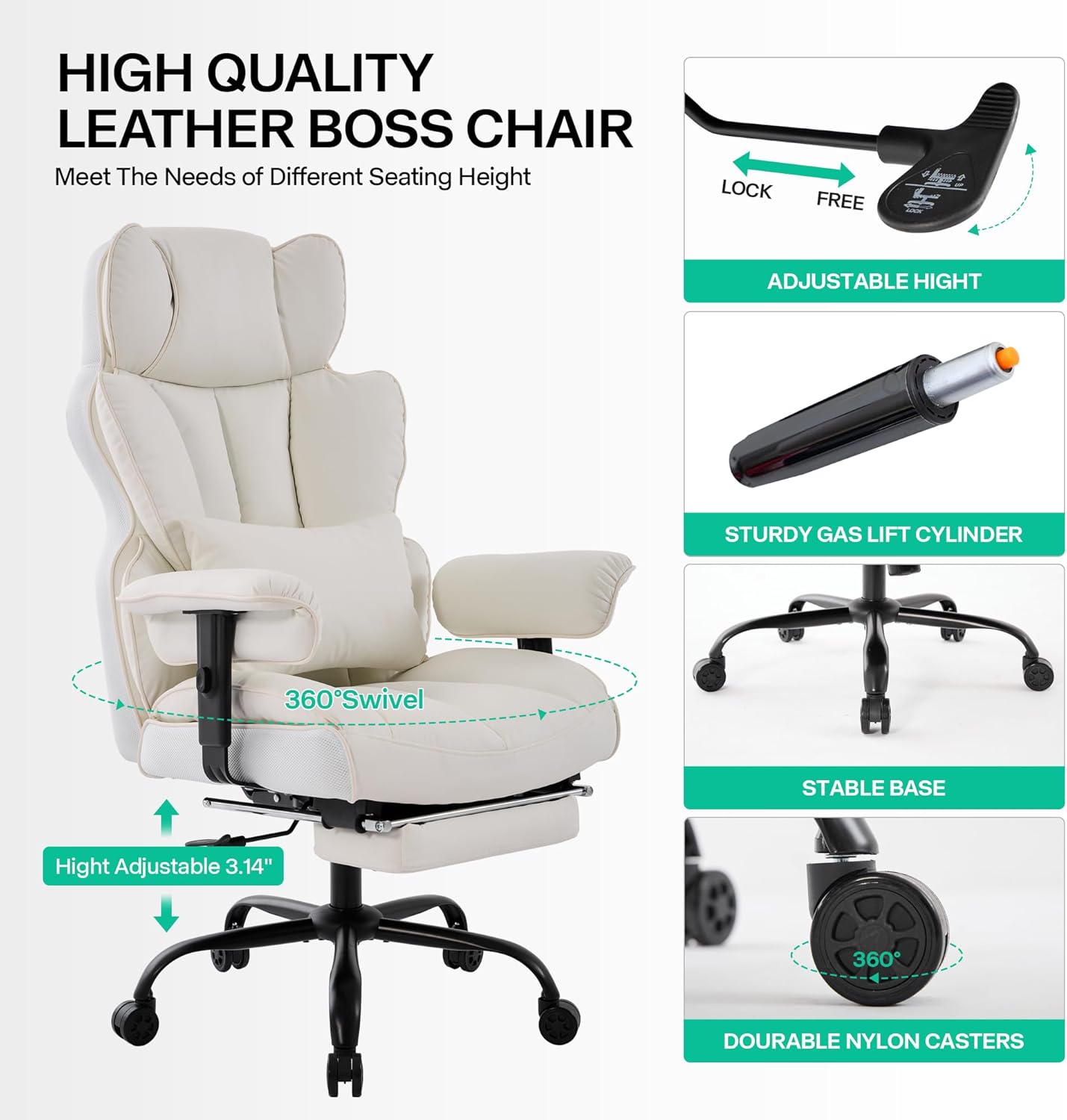 - 2 piel sintética de lujo: esta silla de oficina de piel está tapizada en piel sintética duradera y resistente a los arañazos, que combina perfectamente con la decoración de tu oficina en casa o habitación. Las sillas de computadora de oficina en casa son solo para ti. La silla de oficina ergonómica equipa un cojín de asiento de esponja de doble capa. El respaldo grande de la silla de oficina y el soporte lumbar no empotrado envuelven suavemente alrededor de tu cuerpo, apoyan tu espalda baja, cuidadosamente diseñado para la silla de oficina grande y alta para mantenerte cómodo durante largas horas de trabajo, estudio o juego. La silla de oficina de piel proporciona una comodidad inigualable. Además, esta silla ejecutiva con reposapiés también se puede utilizar como silla de piernas cruzadas