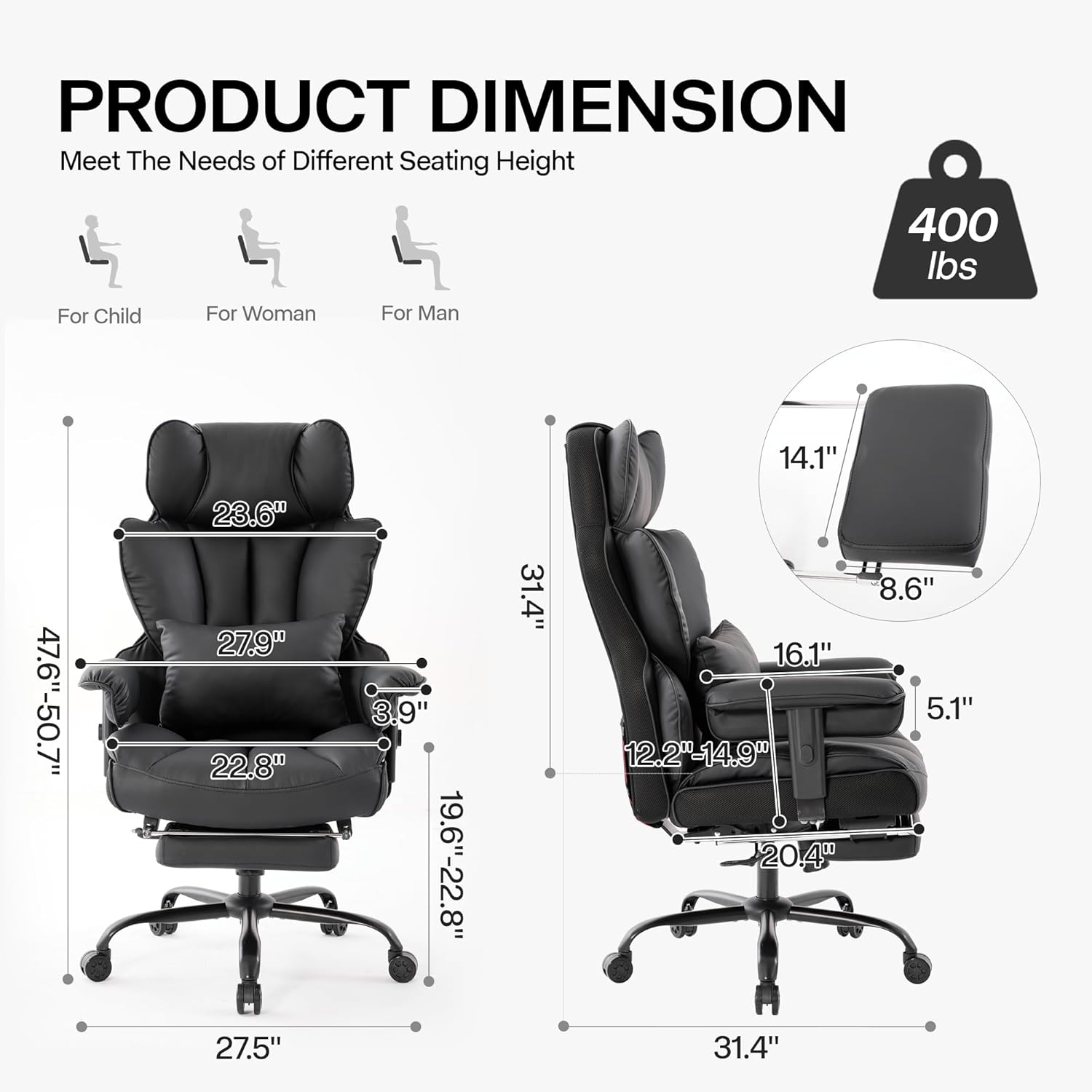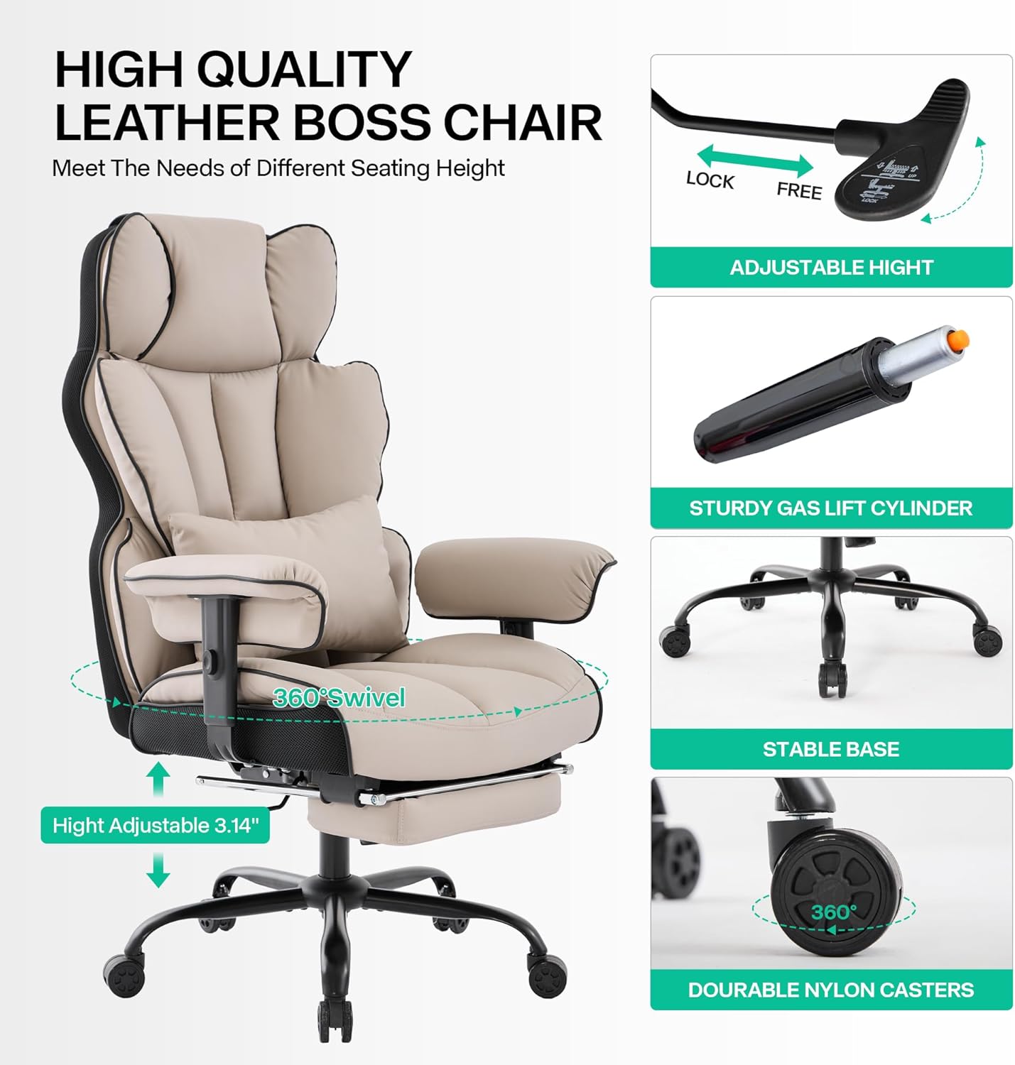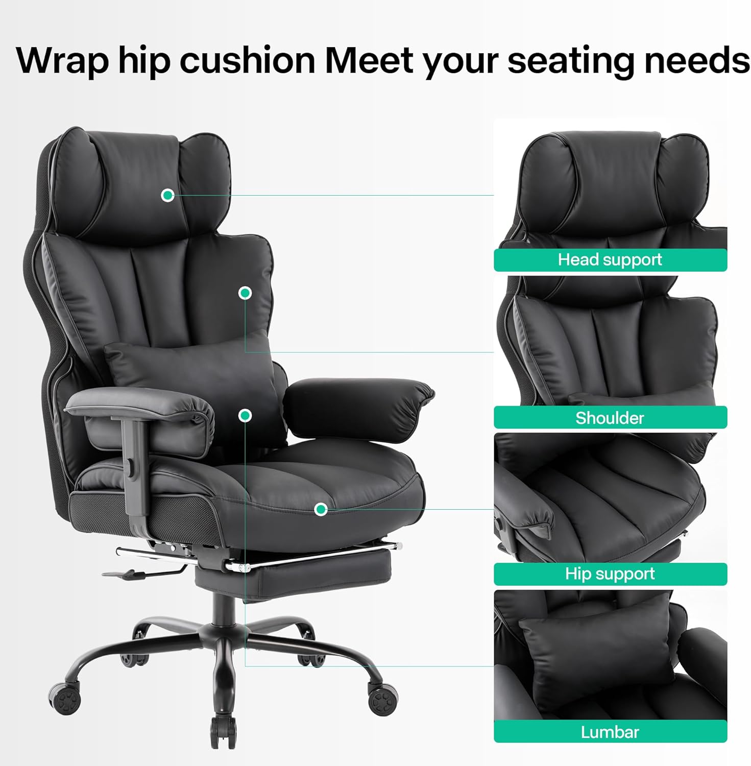 - 4 Garantía de calidad: la silla de oficina resistente está construida con materiales de primera calidad, incluyendo un cilindro de gas de clase 3 certificado por SGS y una base de metal aprobada por BIFIMA. La silla de oficina de tamaño grande se somete a rigurosas pruebas de durabilidad para garantizar la longevidad del marco y los componentes para el uso