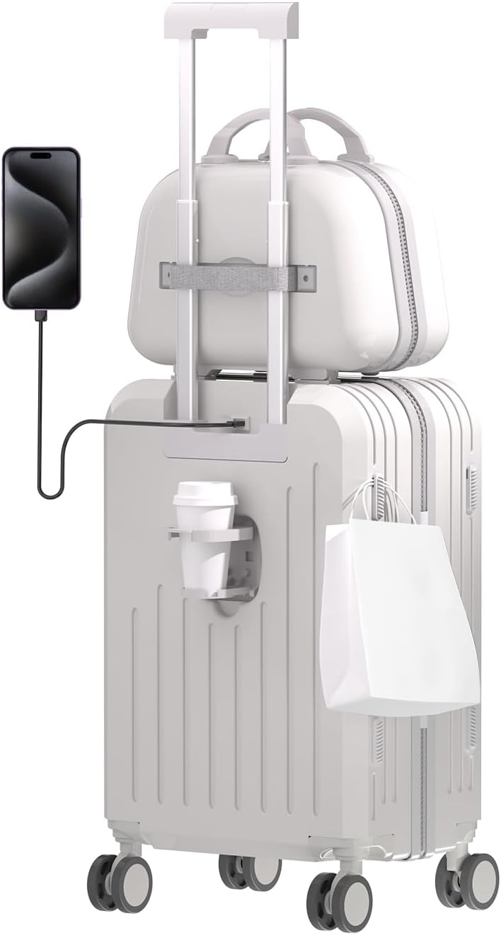 Ruedas giratorias duraderas4 ruedas giratorias reducen el trabajo físico durante el viaje, haciéndote sentir más relajado y cómodo. | Puerto de carga USBColoque la fuente de alimentación móvil en su maleta y conéctela a la interfaz incorporada para cargar sus dispositivos electrónicos en cualquier momento. | Mango telescópico resistenteEl mango se puede ajustar según diferentes etapas, lo que proporciona un control cómodo para adaptarse a viajeros de cualquier tamaño. |