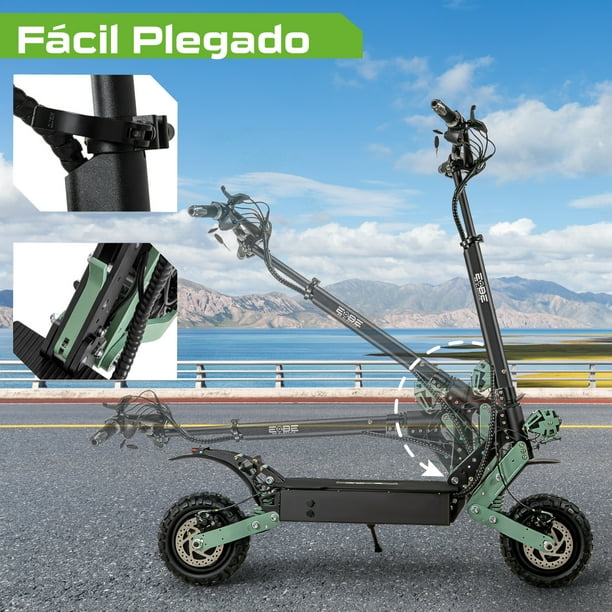 - • POTENCIA ELÉCTRICA DE ALTO RENDIMIENTO Y CONEXIÓN BLUETOOTH. Scooter eléctrico plegable equipado con 2 motores y 3 velocidades, alcanzando una velocidad máxima de 75 km/h para llevarte a donde necesites con rapidez y estilo. Integra bocinas con conexión bluetooth para escuchar la música que más te complazca mientras conduces tu poderoso patín.