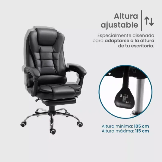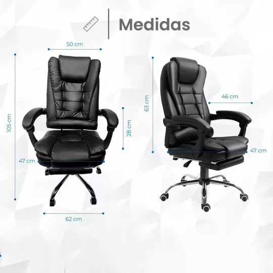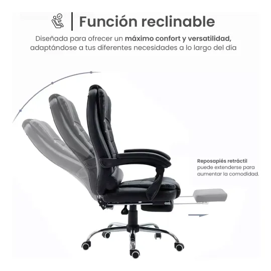 • Reclinable: Ajusta el ángulo del respaldo para una mayor comodidad durante largas horas de trabajo.