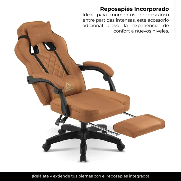 Reposapiés Incorporado¡Relájate y extiende tus piernas con el reposapiés integrado! Ideal para momentos de descanso entre partidas intensas, este accesorio adicional eleva la experiencia de confort a nuevos niveles.