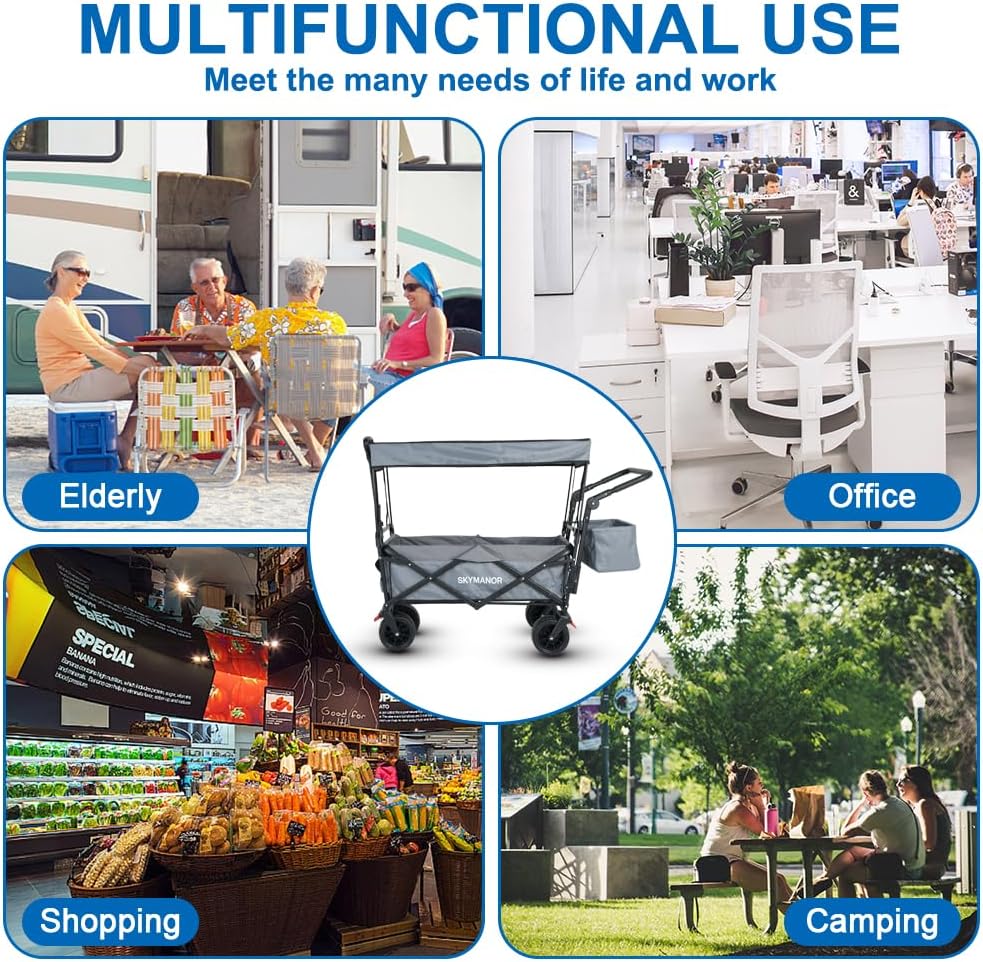 - Carrito multiusos para carro: equipado con escudo UV y cinturón de seguridad, puede proteger a nuestros niños o artículos del sol. Ya sea en exteriores o interiores, podemos utilizar este carriola con confianza. Este carriola no solo es adecuado para el uso diario familiar como llevar a niños y ir de compras, sino también para viajes, camping, jardín, barbacoas, oficina y muchas otras ocasiones, haciendo que tu vida sea más colorida.