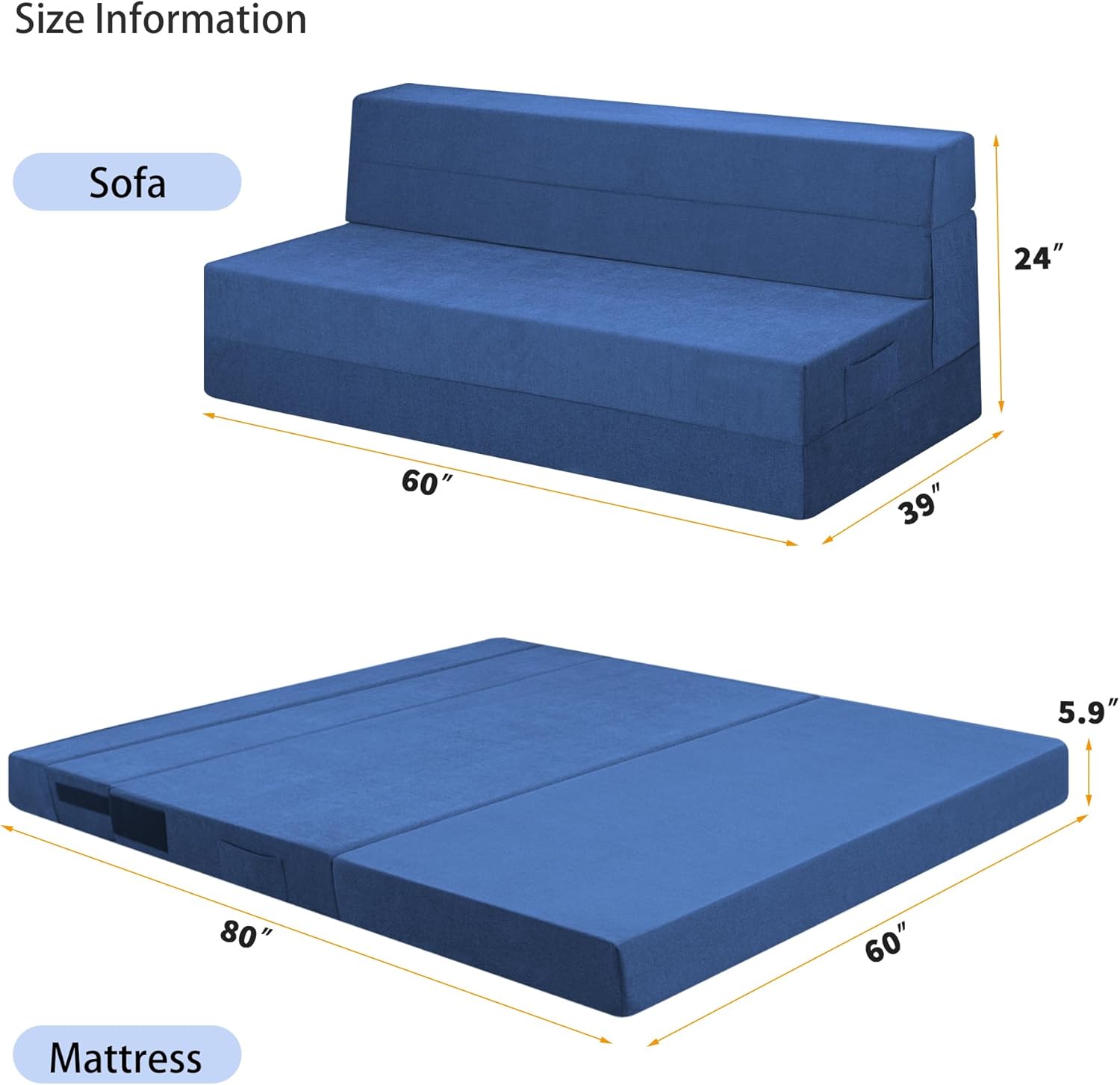 - Sin montaje y portátil: este sofá cama plegable no requiere instalación, y se puede desplegar completamente para su uso después de abrir durante 24 a 48 horas. Peso ligero, fácil de plegar, almacenar y transportar, y fácil de mover. Perfecto para lugares con espacio limitado, como salas de estar, tatami, habitaciones de invitados, apartamentos, loft, dormitorios, salas de juegos, dormitorios universitarios, caravanas, patios, tiendas de campaña, furgonetas, casas móviles, viajes, siesta, masajes, yoga, entrenamientos, etc.