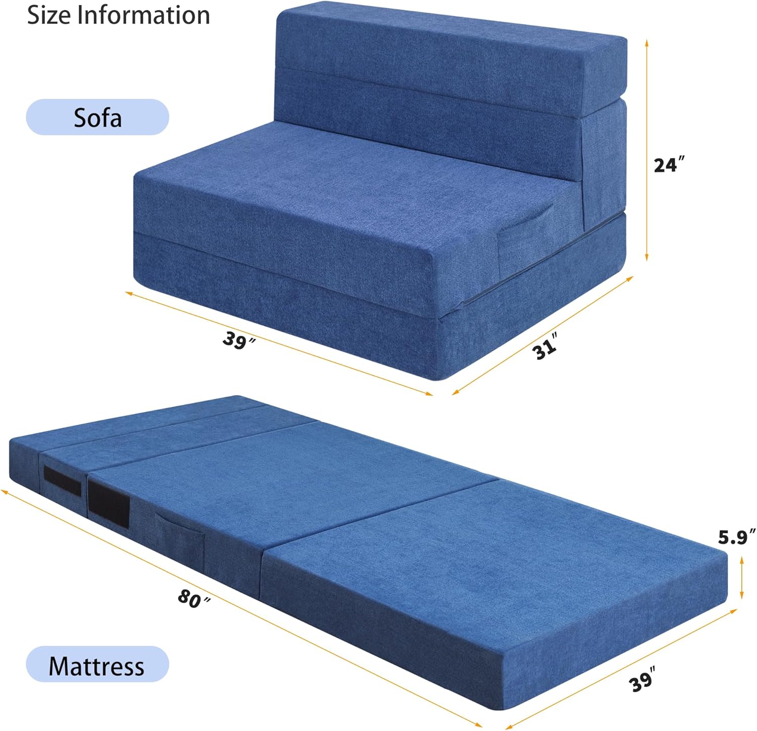 - Funda extraíble y lavable: la funda de este sofá cama está hecha de tela de chenilla de alta calidad, que es transpirable y agradable al tacto. cierre suave en forma de U extendida para hacer que la funda sea más extraíble. Viene con una cierre suave, la cubierta exterior se puede quitar para un fácil enjuague. Un bolsillo está cosido en el lateral del sofá cama, que es conveniente para guardar teléfonos móviles y otros productos electrónicos. Es conveniente y práctico.