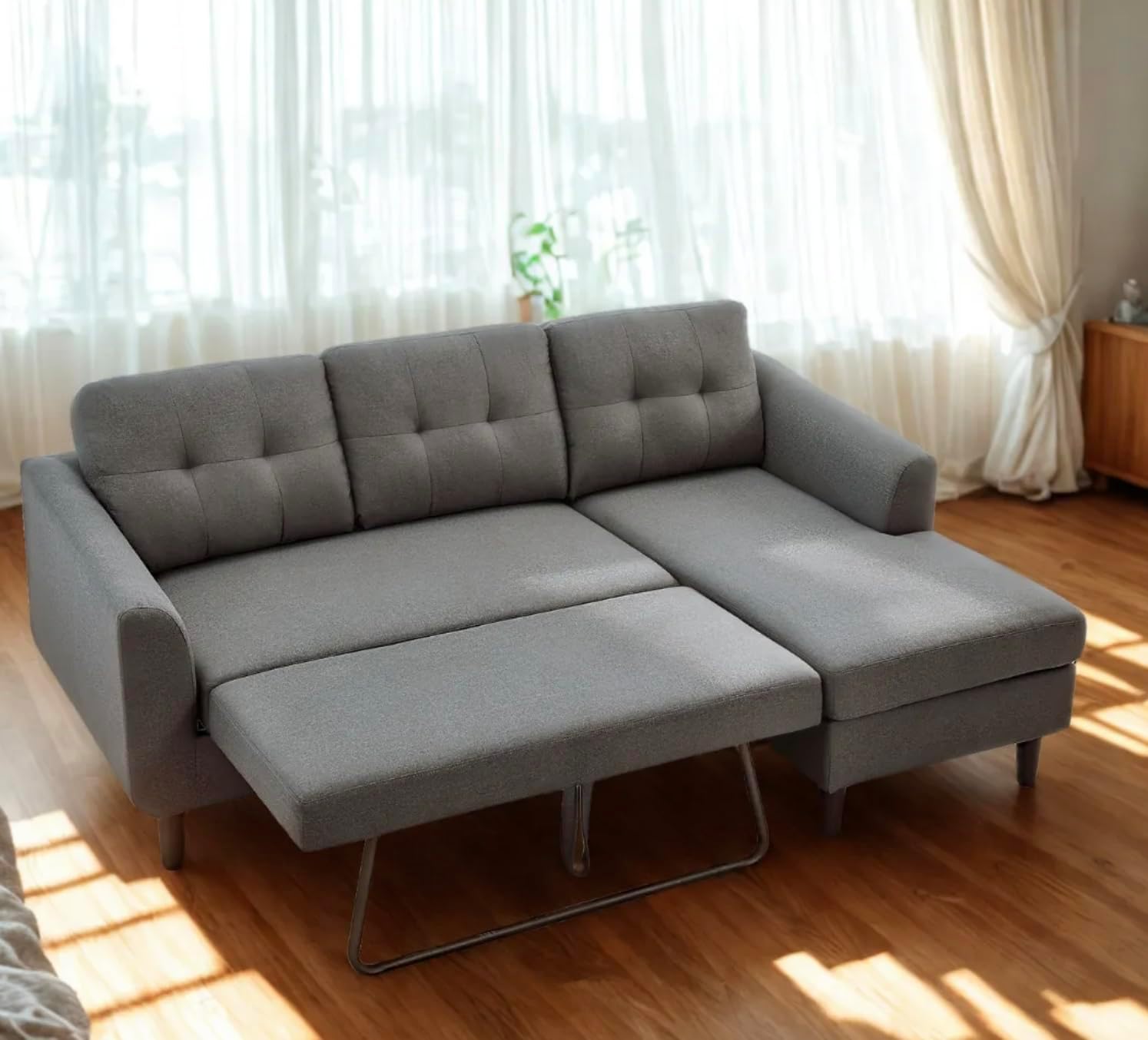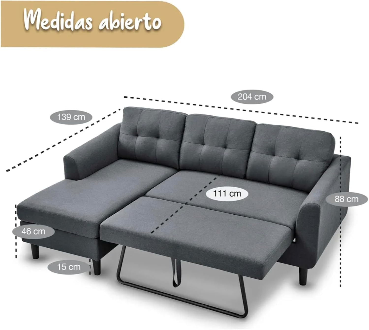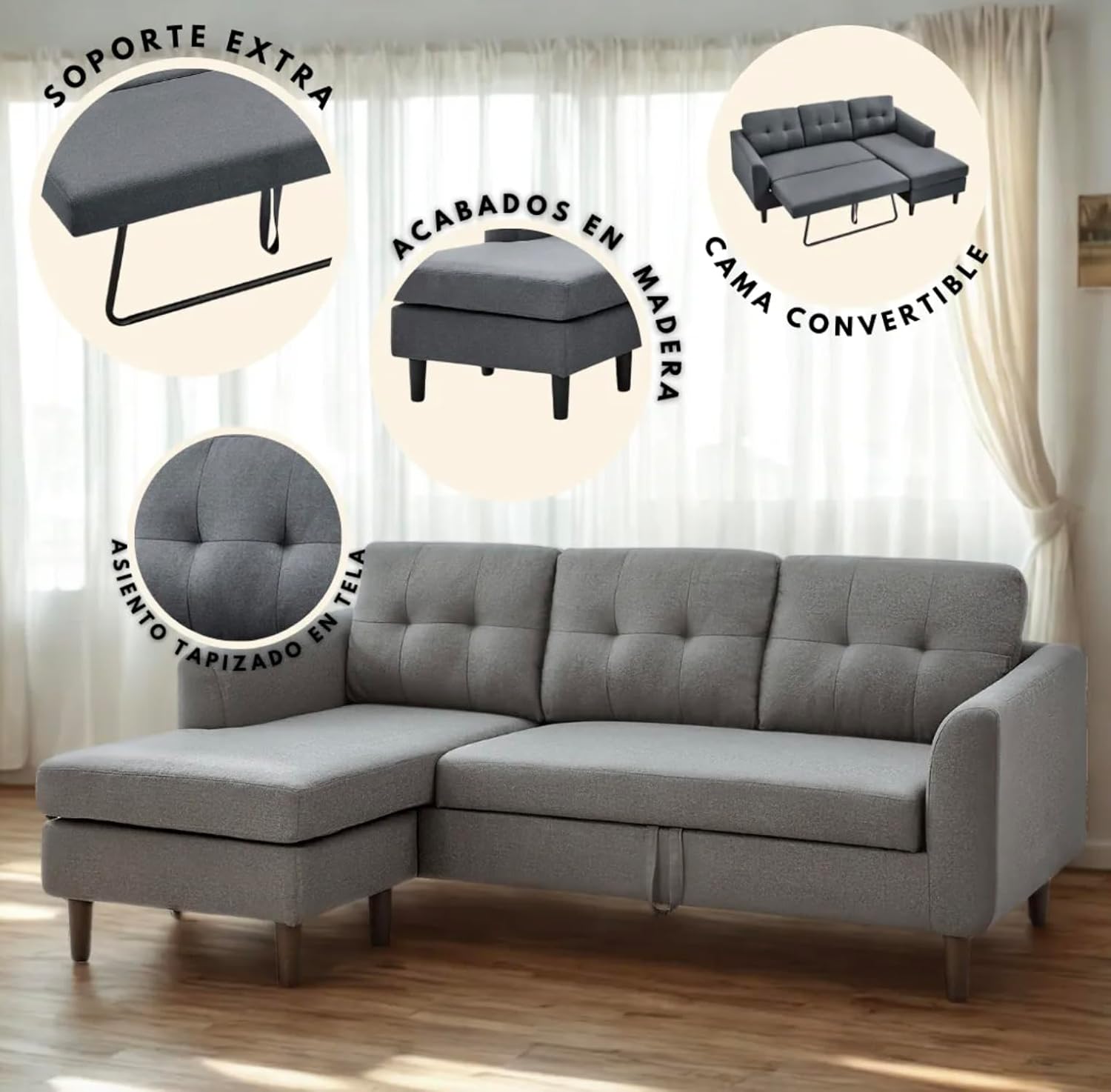 - *Sofá cama convertible: gracias al mecanismo extraible, puedes ajustar el sofá futón en siilón o cama.